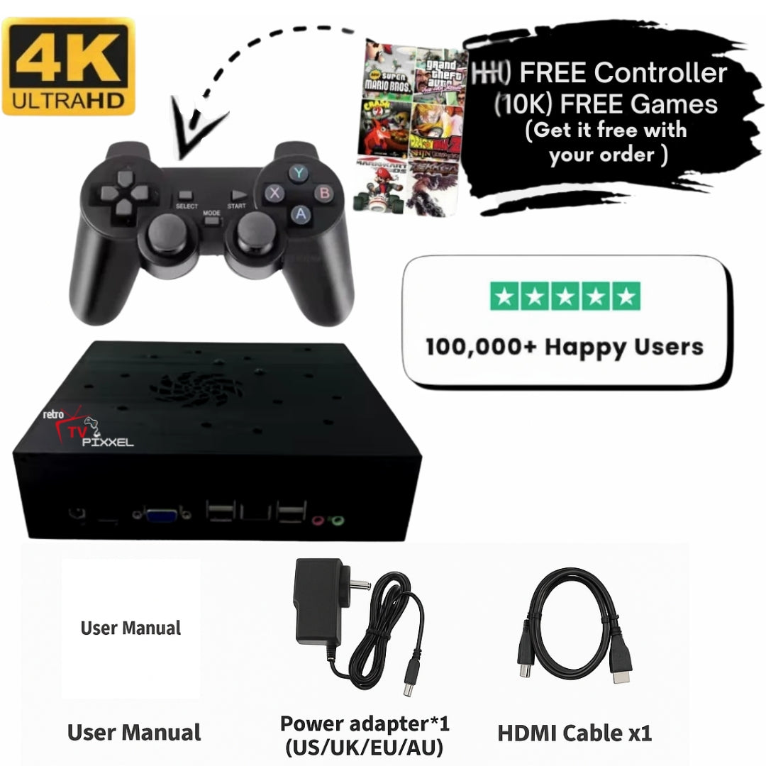 Transform any TV into your personal retro gaming arcade.Enjoy lag-free gaming with the included wireless controllers,save your progress anytime, and rest easy with our 90-day guarantee.